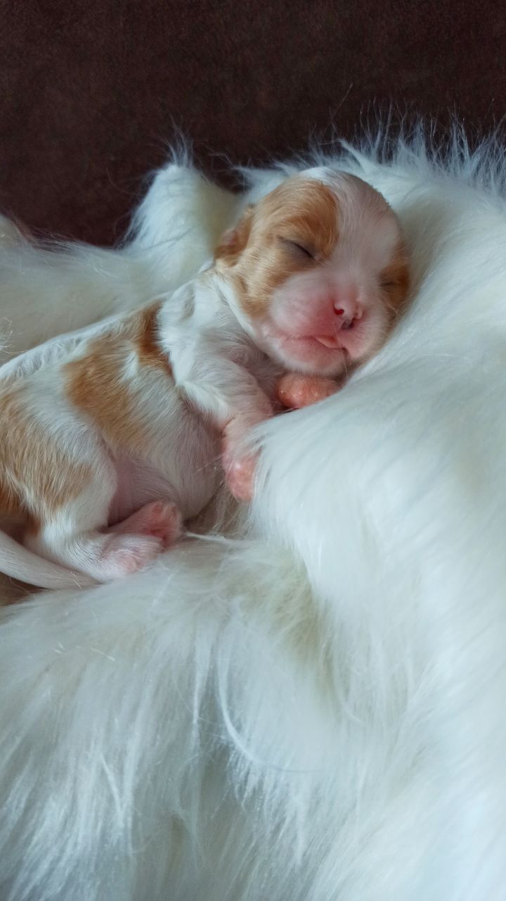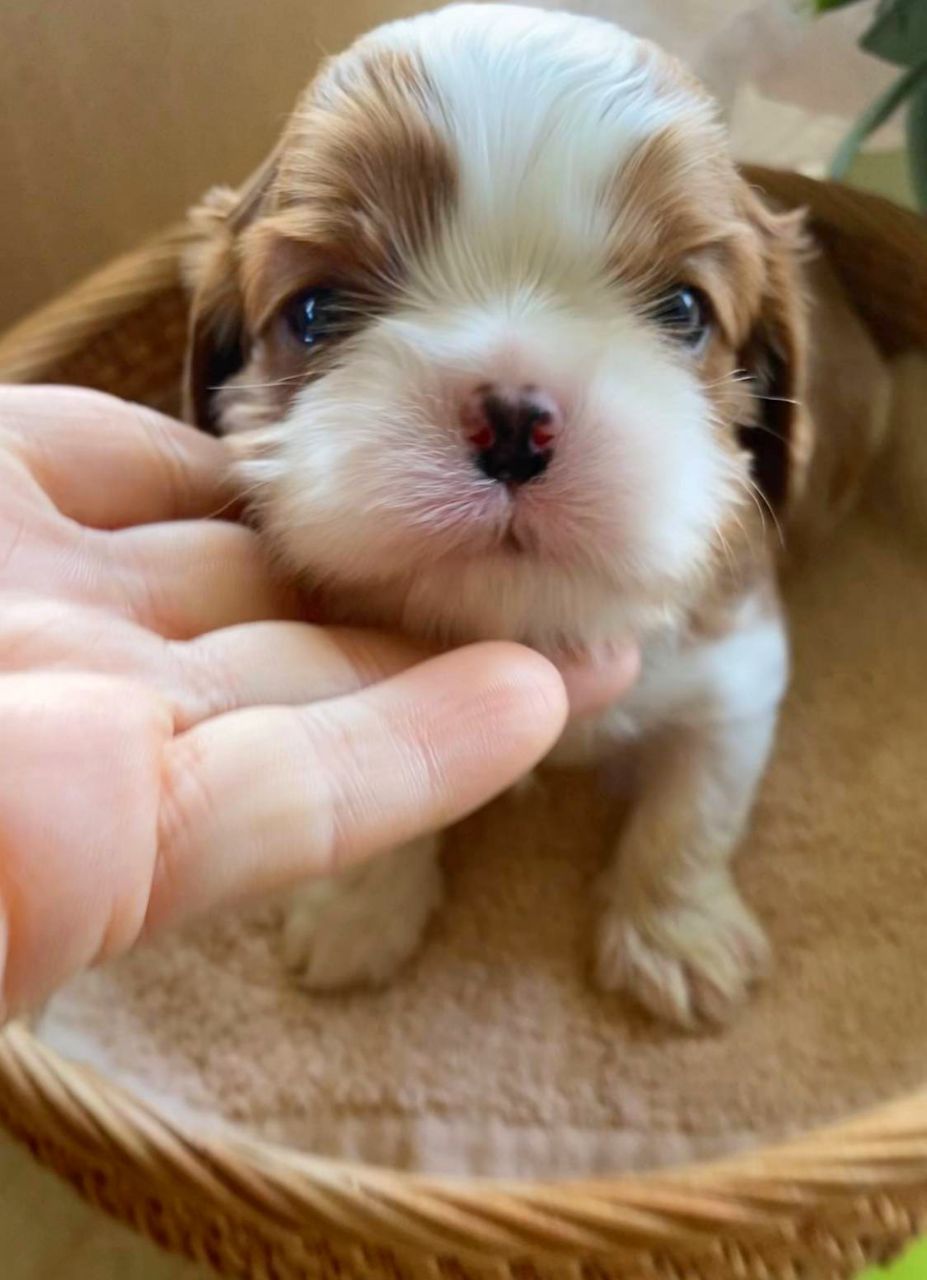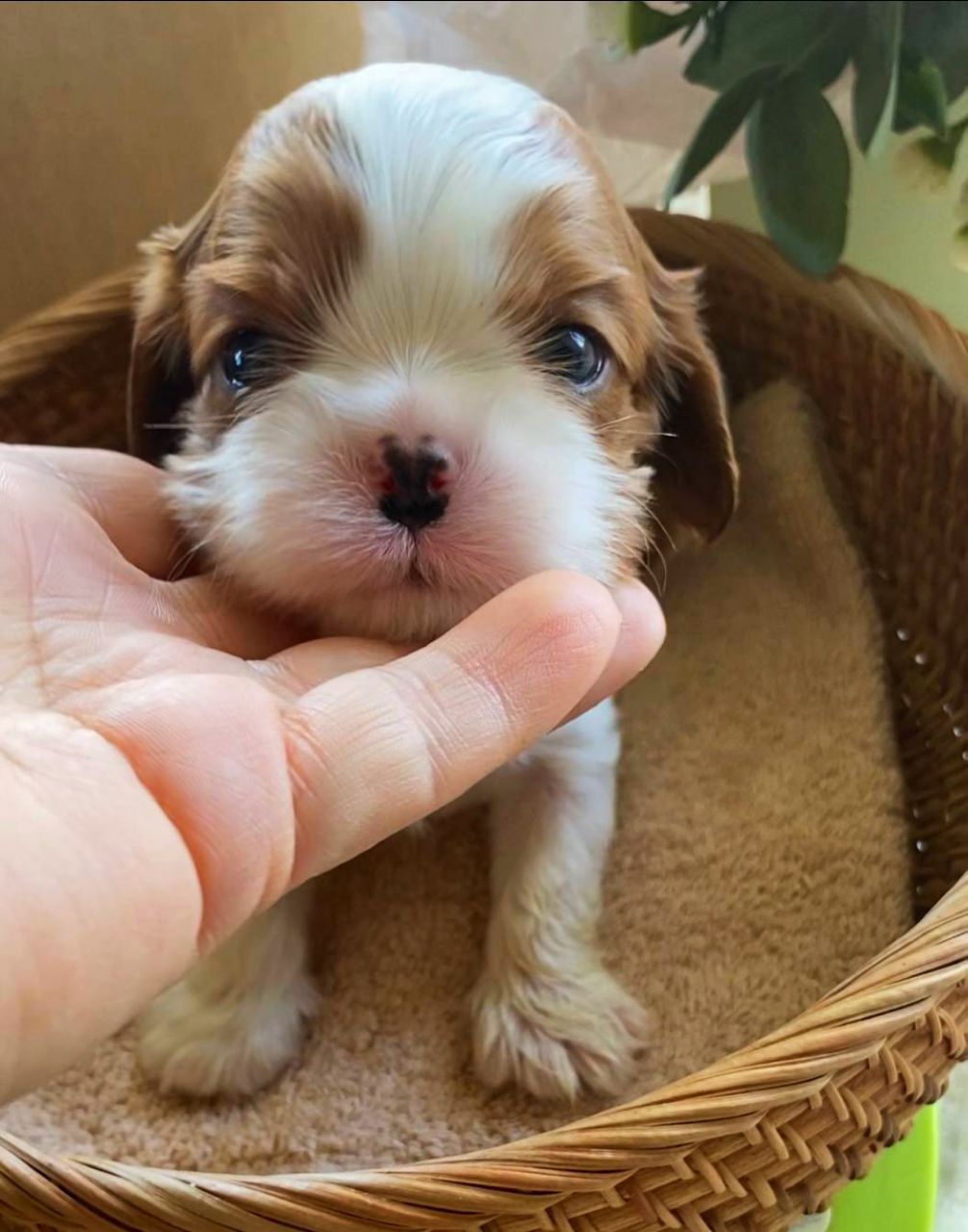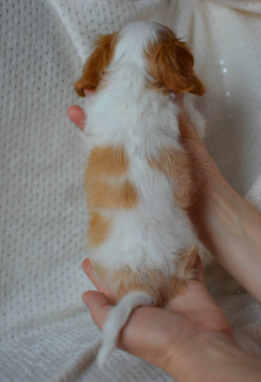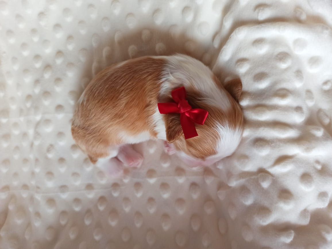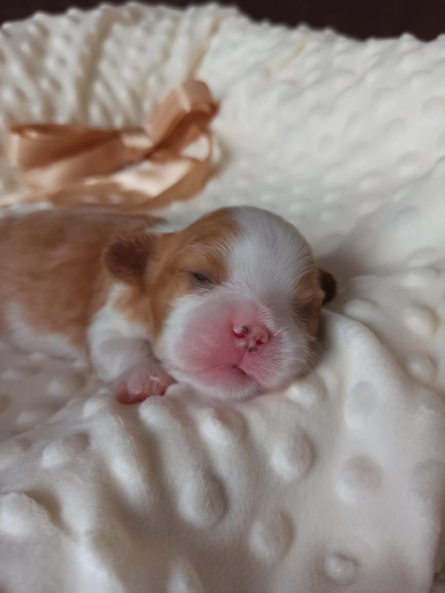 Маленькая, хорошо сбалансированная,нарядная малышка с задорным характером.Вырастет около 5 кг.