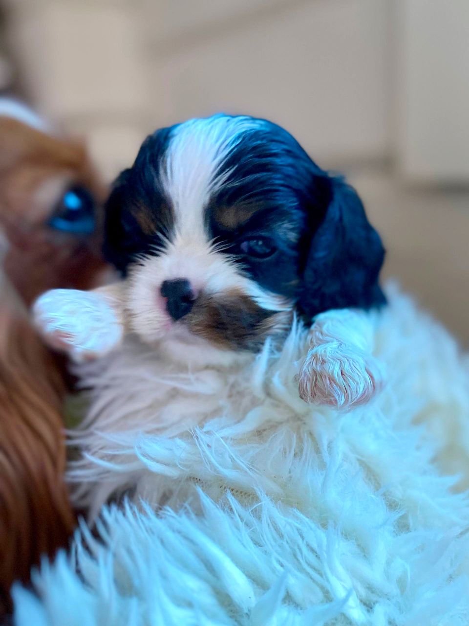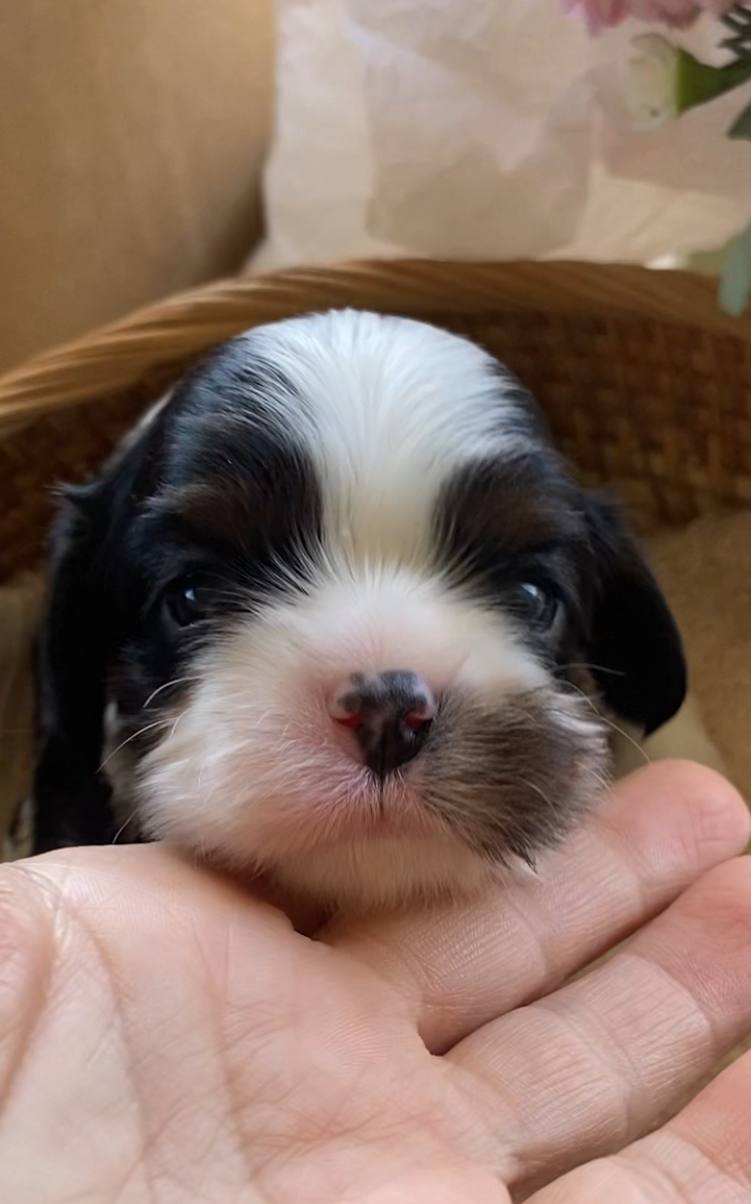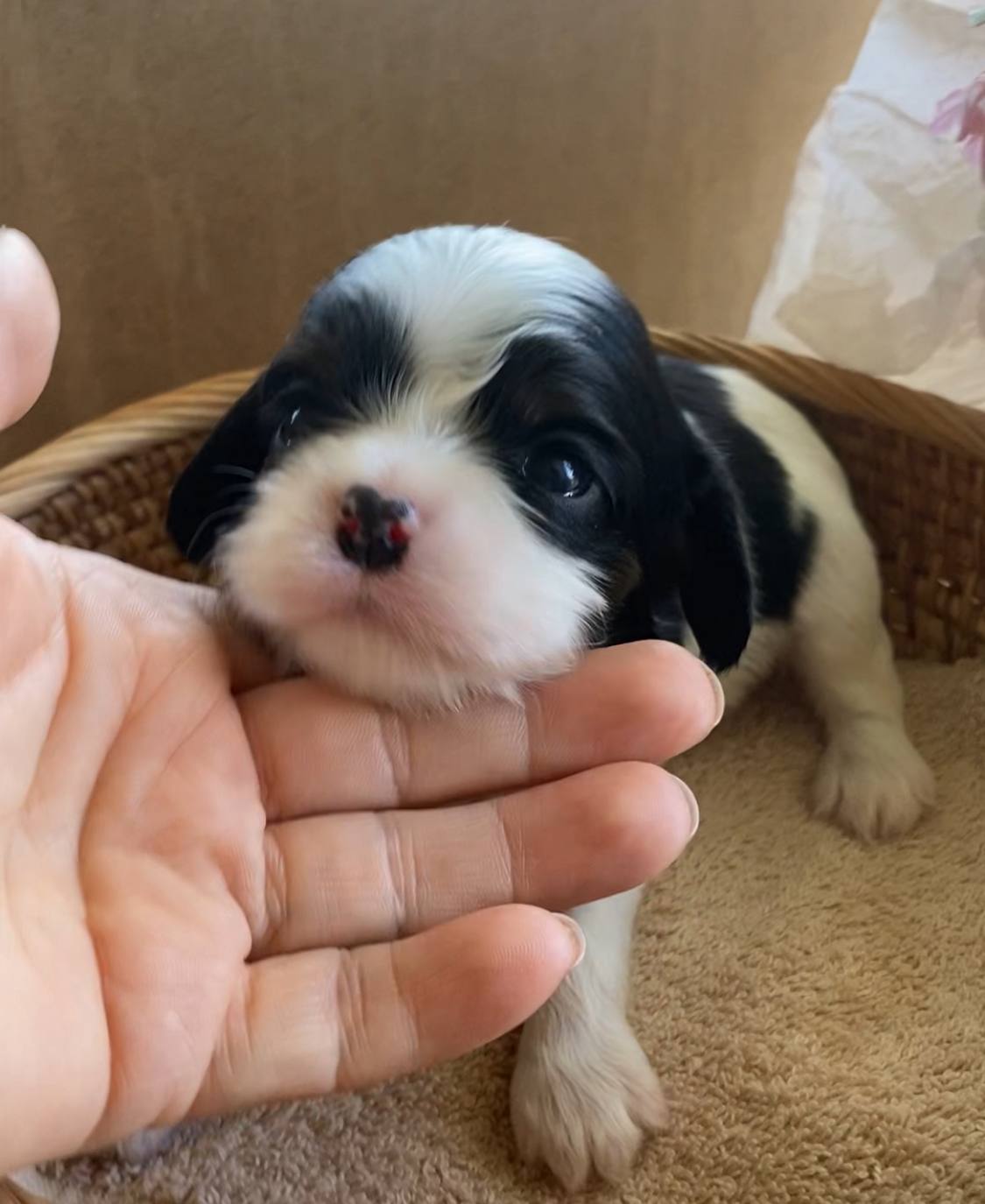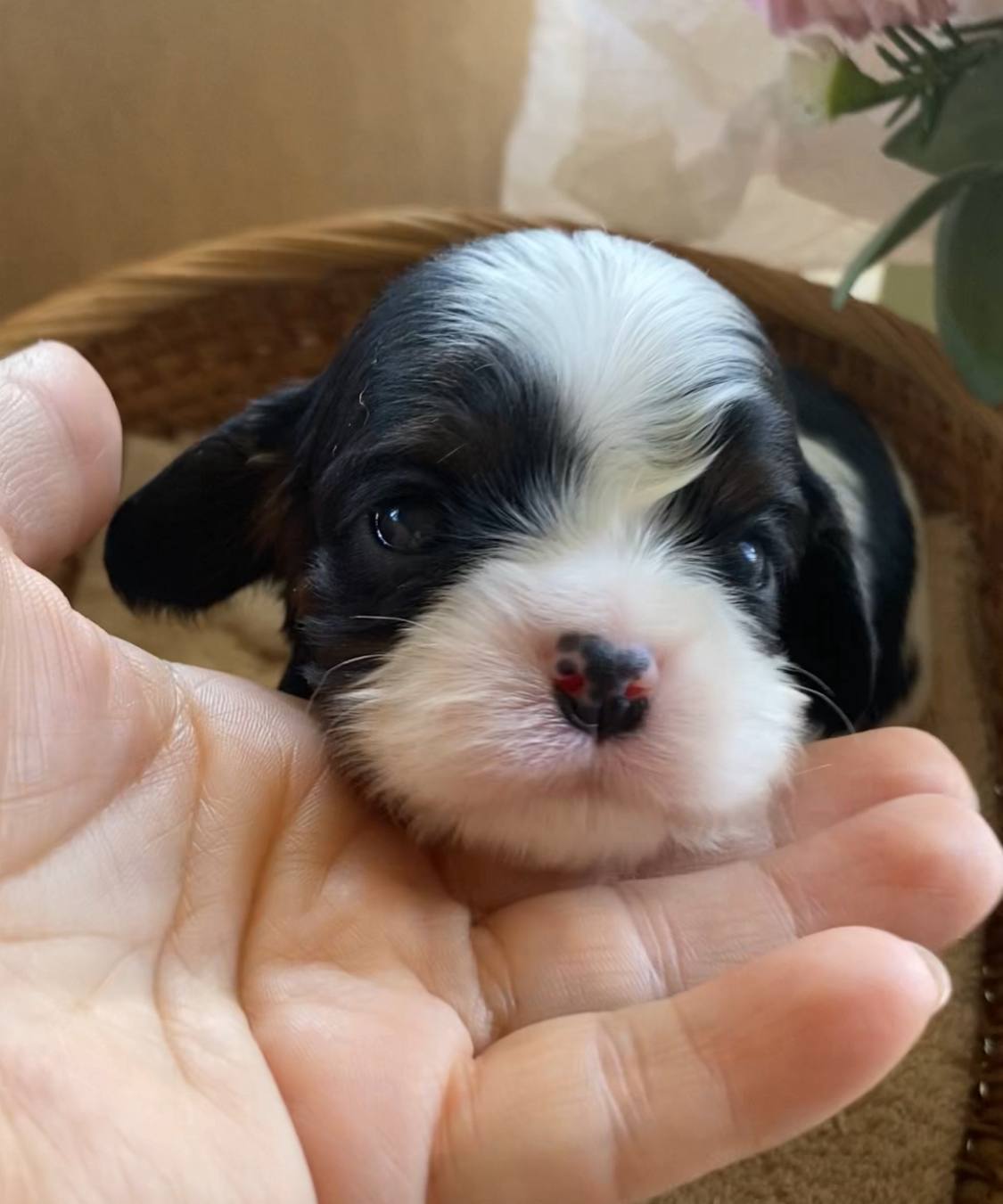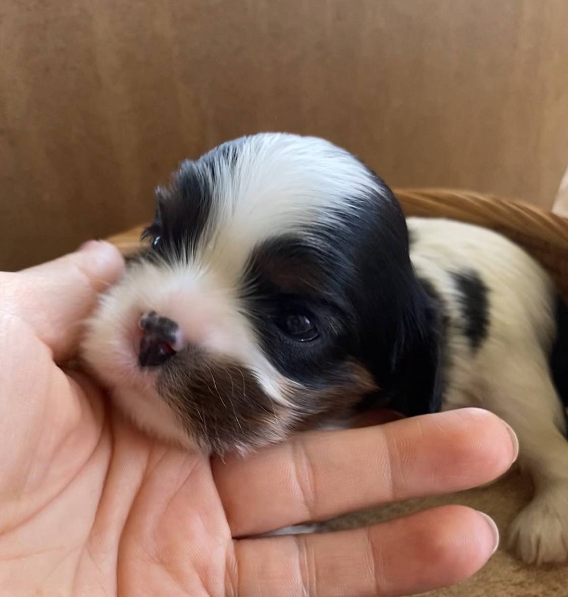 Маленькая, хорошо сбалансированная,нарядная малышка с задорным характером.Вырастет около 5 кг.